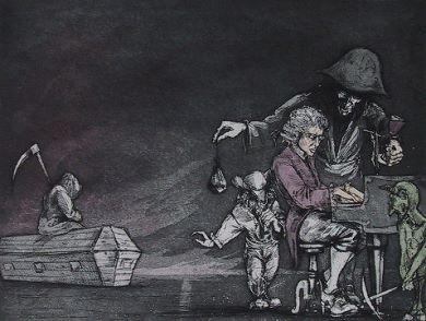 Radierung, Strich- u. Aquatintaätzung v. 2 Platten